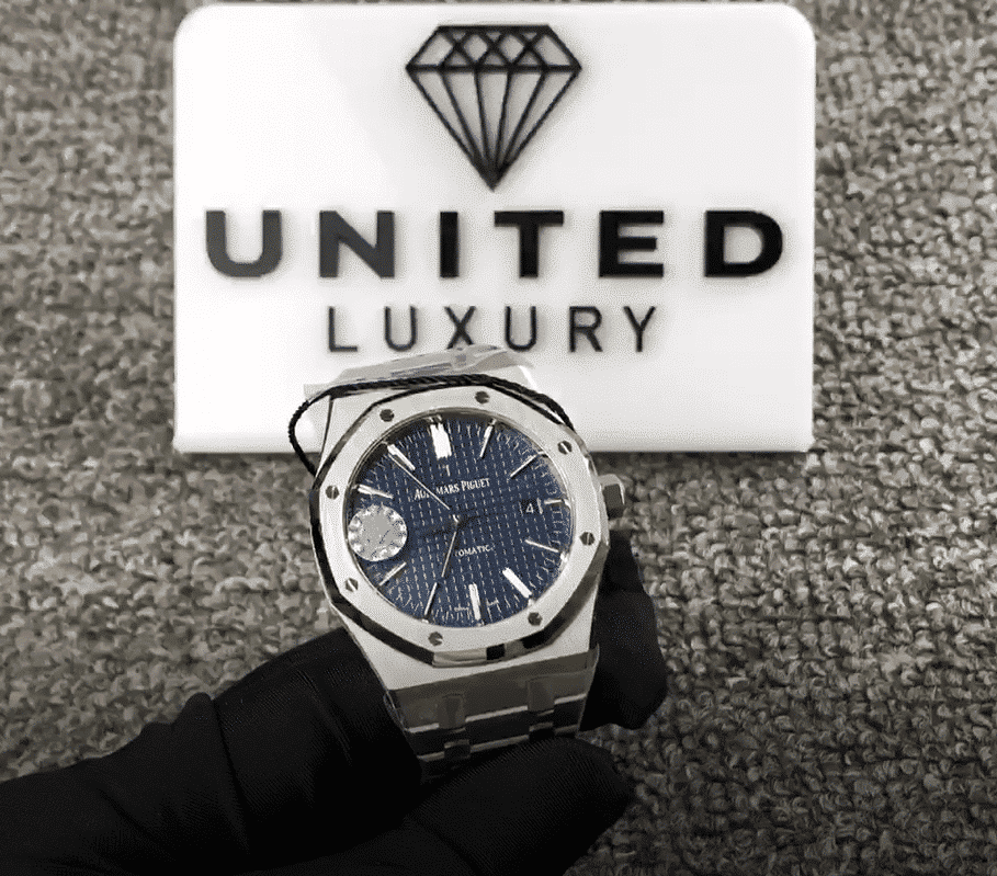 The dial is nicknamed the Grande Tapisserie and is blue in color with stick/dot indices. The hour markers are made of 904L stainless steel and the hands are Royal Oak hands. The watch has a water resistance of 30m and comes with a full 2 year international warranty. It is a perfect 1:1 super clone Swiss mechanism watch and even your jeweler won’t be able to tell the difference.