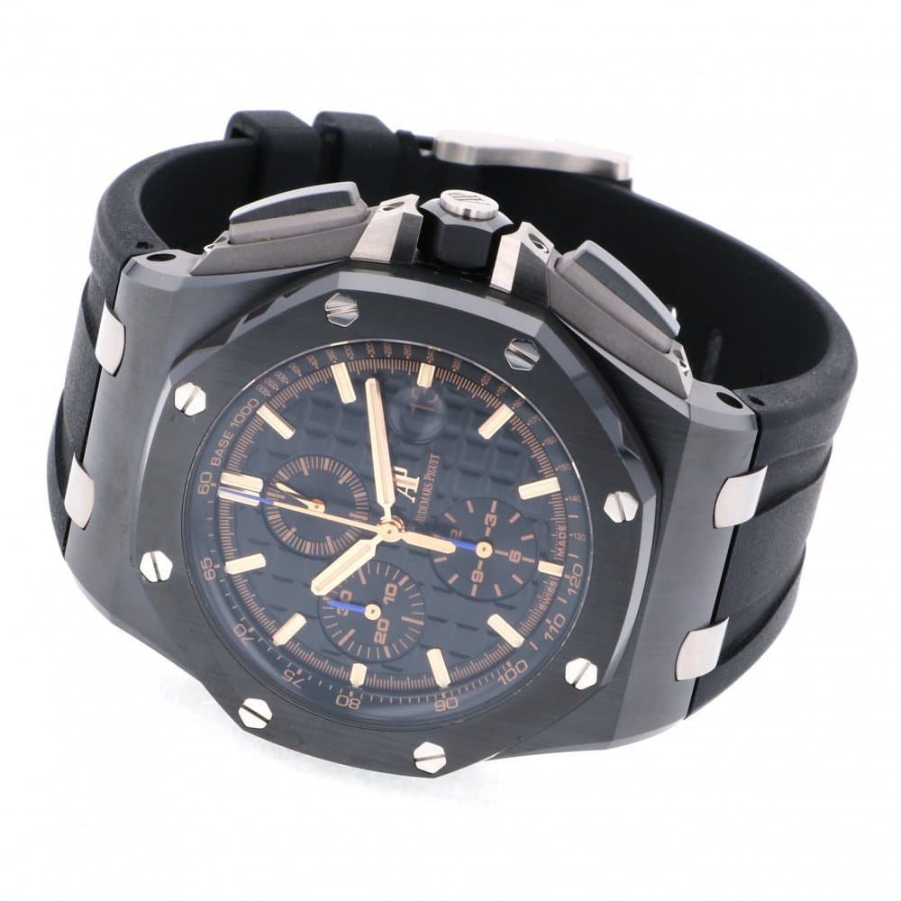 The Audemars Piguet Royal Oak Offshore 26405CE.OO.A002CA.02 replica is a luxury watch. It features a 904L stainless steel case with a black bezel and a ceramic crystal. The movement is an automatic caliber 3126 / 3840 with a power reserve of 60 hours and a precision of (-3/+3 sec/day) within COSC certification limits. The second hand has a sweep motion.
